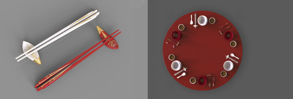 我們以刺桐花為靈感,將其花瓣的曲線、層次感融入餐具造型設計中,讓這套餐具不僅是一種器物,更是一種文化的傳承與情感的寄託。碗的弧度如花朵綻放,盤子的邊緣如柔和的花瓣曲線,每一道紋理,都象徵著親情的細膩與歲月的溫潤。白色款簡約純淨,適合日常使用,紅色款則熱烈喜氣,適合佳節使用。金色點綴的筷子與湯匙,更添富貴寓意,象徵財富與美好生活。每一個細節,都是對傳統文化的致敬,也是對生活儀式感的追求。
