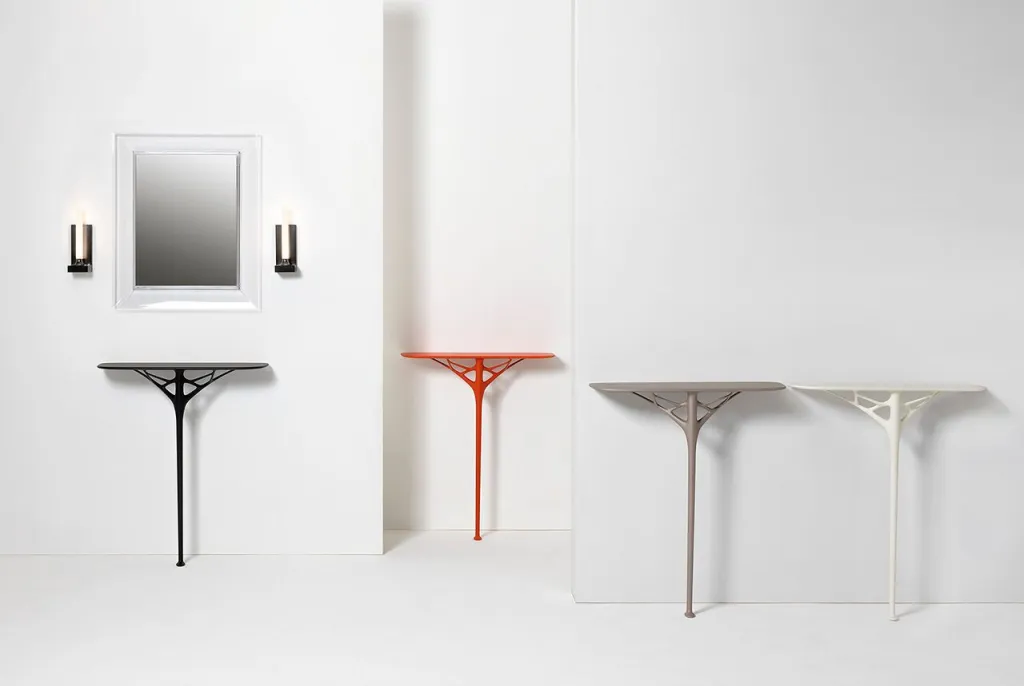 Another striking design is the A.I. Console work table, which perfectly embodies the elegant essence of artificial intelligence and pursues the pure aesthetics of design. This work table is a unique piece of furniture, adding a distinctive and minimalist ambiance to entrances and hallways in both residential and commercial environments. The A.I. Console comes in various color options, including white, gray, green, terracotta, and black. Moreover, the material used for this work table is quite special, made from recycled Illy iPerEspresso coffee capsules, showcasing the perfect blend of sustainability and design.