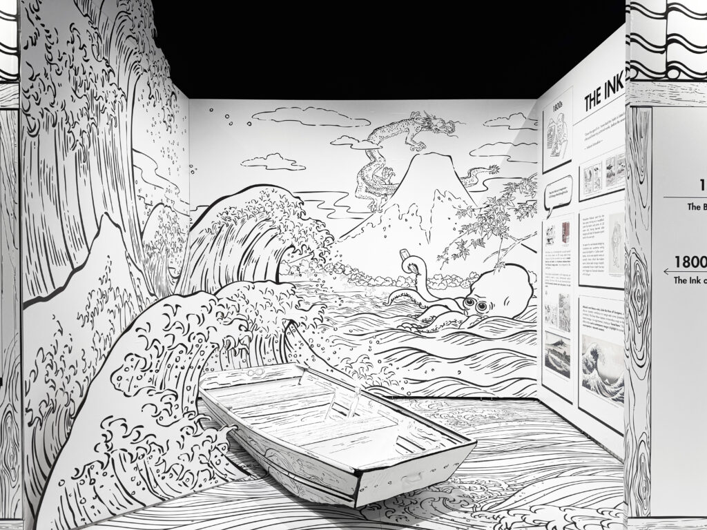 The《Hokusai & Ukiyo-e》themed exhibition, presented by 2D Restaurant in collaboration with CCMA, will take place in the summer of 2025 at the Cleve Carney Museum of Art in Chicago. Featuring black-and-white 2D-style murals created by designers from FIPEA, the exhibition highlights four beloved themes. Through recreated scenes, immersive experiences, and interactive activities, visitors are taken on a journey that bridges Eastern classics with childhood memories.