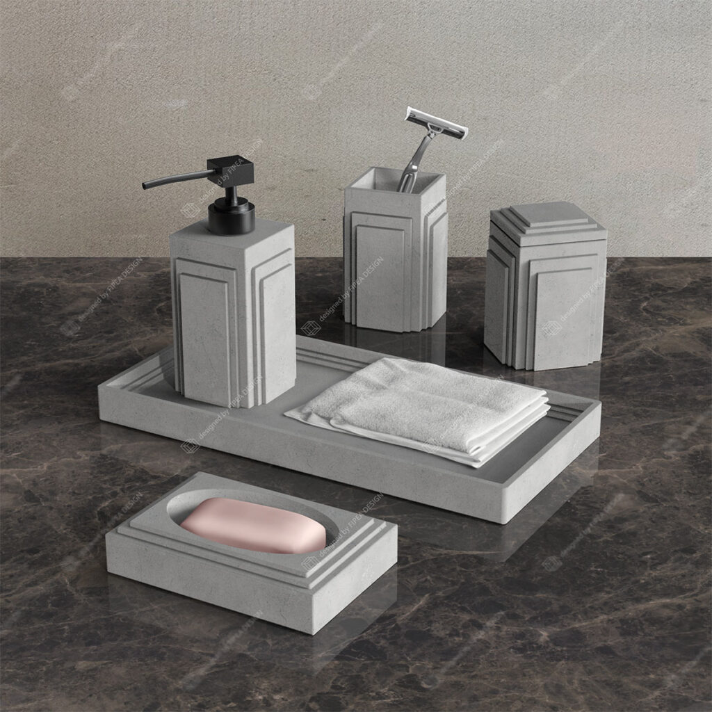 This industrial-style bathroom accessories set, inspired by the design of stairs, aims to transform simple elements from daily life into a unique design language. The details of each product echo the form of stairs, adding visual depth while symbolizing progress and elevation in life.