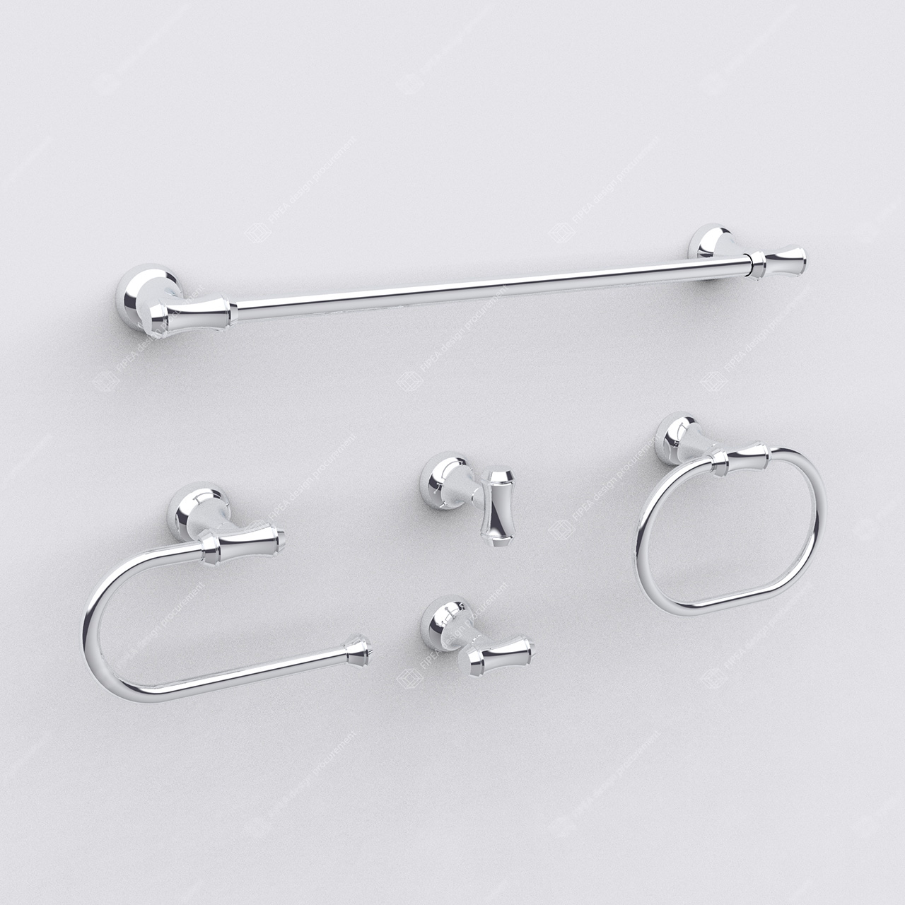 This bathroom accessory collection is inspired by theNeo-Classical style,blending classical elegance with modern simplicity. With smooth curves, rounded details, and high-gloss chrome finishes, it offers a subtly luxurious visual experience.