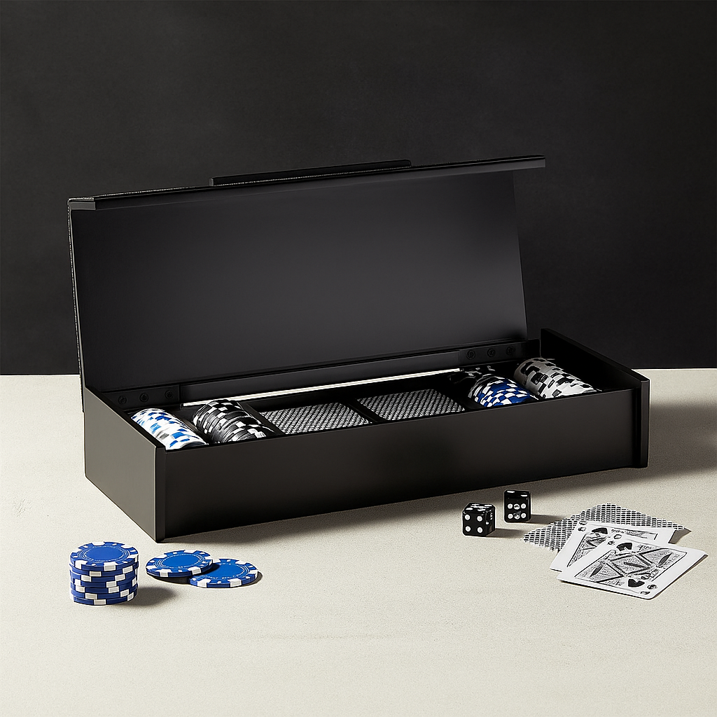 Organized Storage: Features individual compartments inside, perfect for neatly arranging chips, dice, playing cards, and other game accessories.