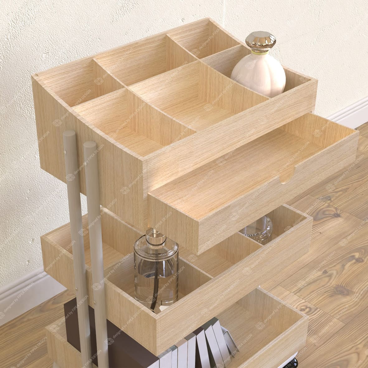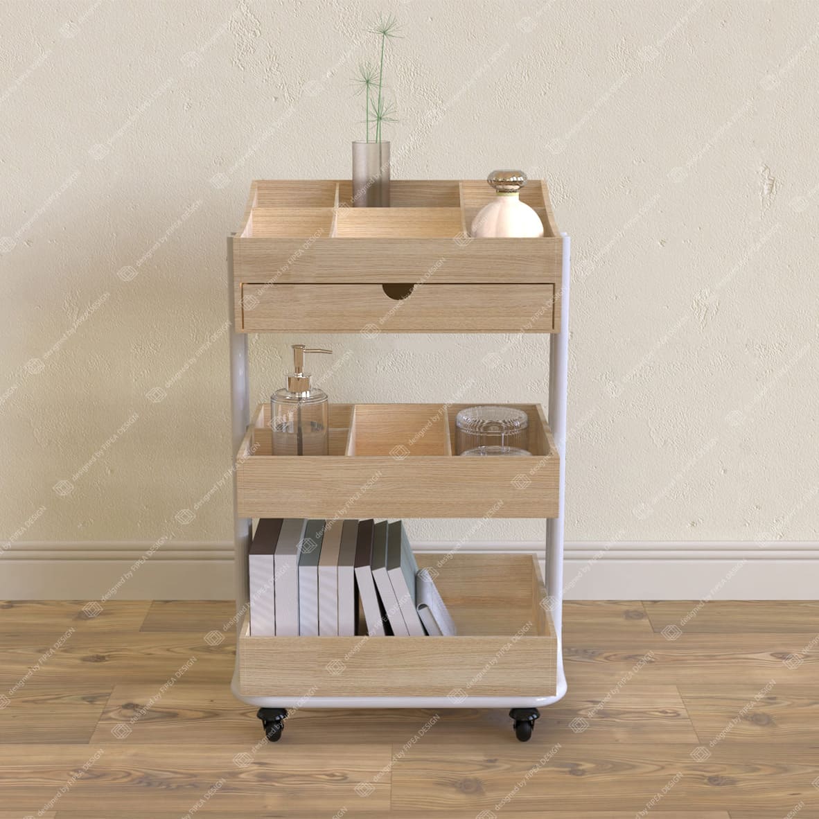 FF0001-Light Wood Grain Storage Cart