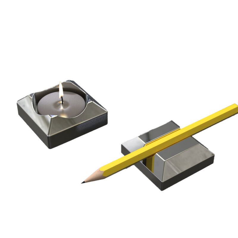 A unique design that blends practicality and aesthetics. This multifunctional paperweight doubles as a pen holder, allowing you to organize your pens and documents. Flip it over, and it transforms into an elegant candle holder. Whether on a desk, bookshelf, or in the living room, the "Pen Torch Paperweight" seamlessly integrates into various settings. It not only serves as a reliable assistant in your work life but also reflects a choice of taste and distinctive style.