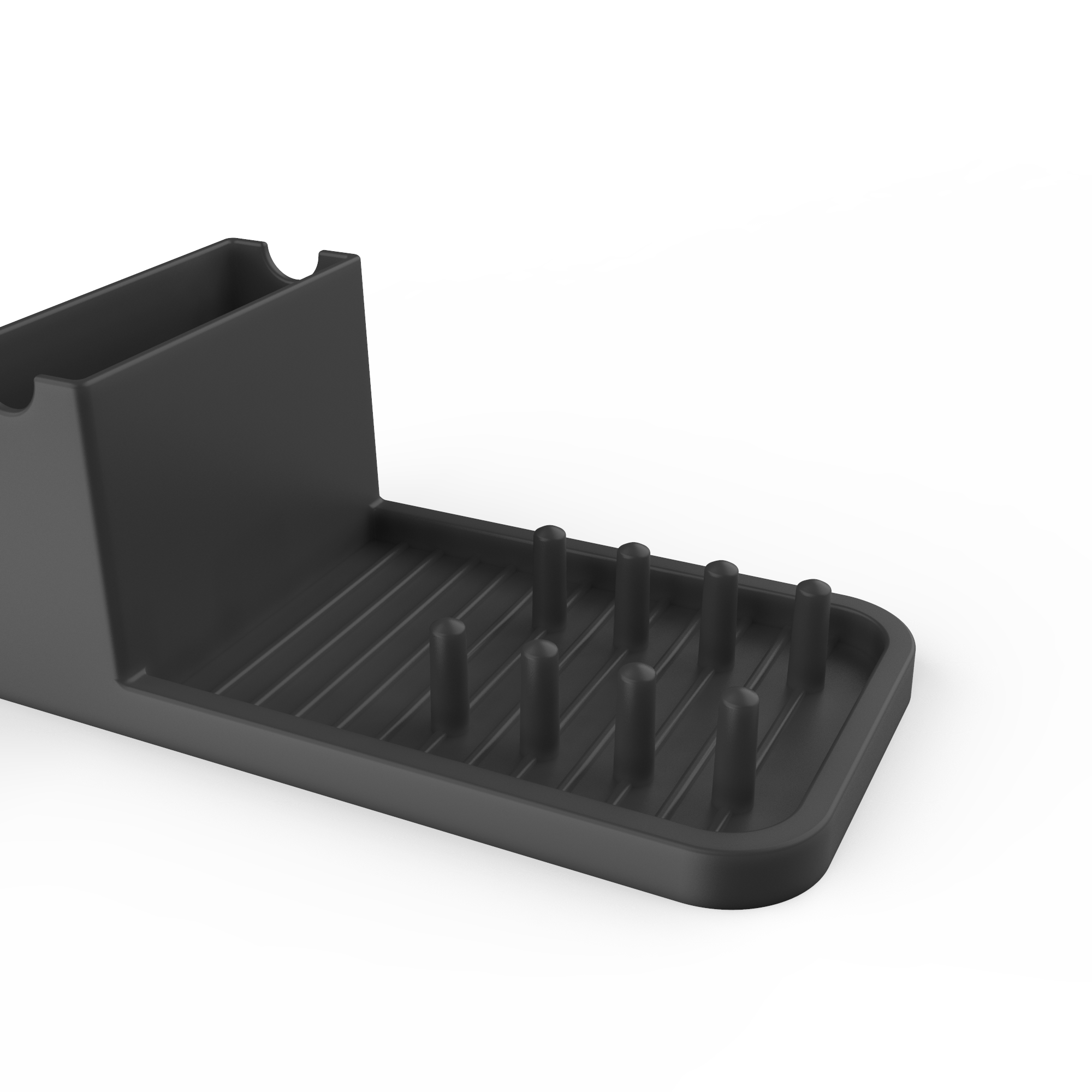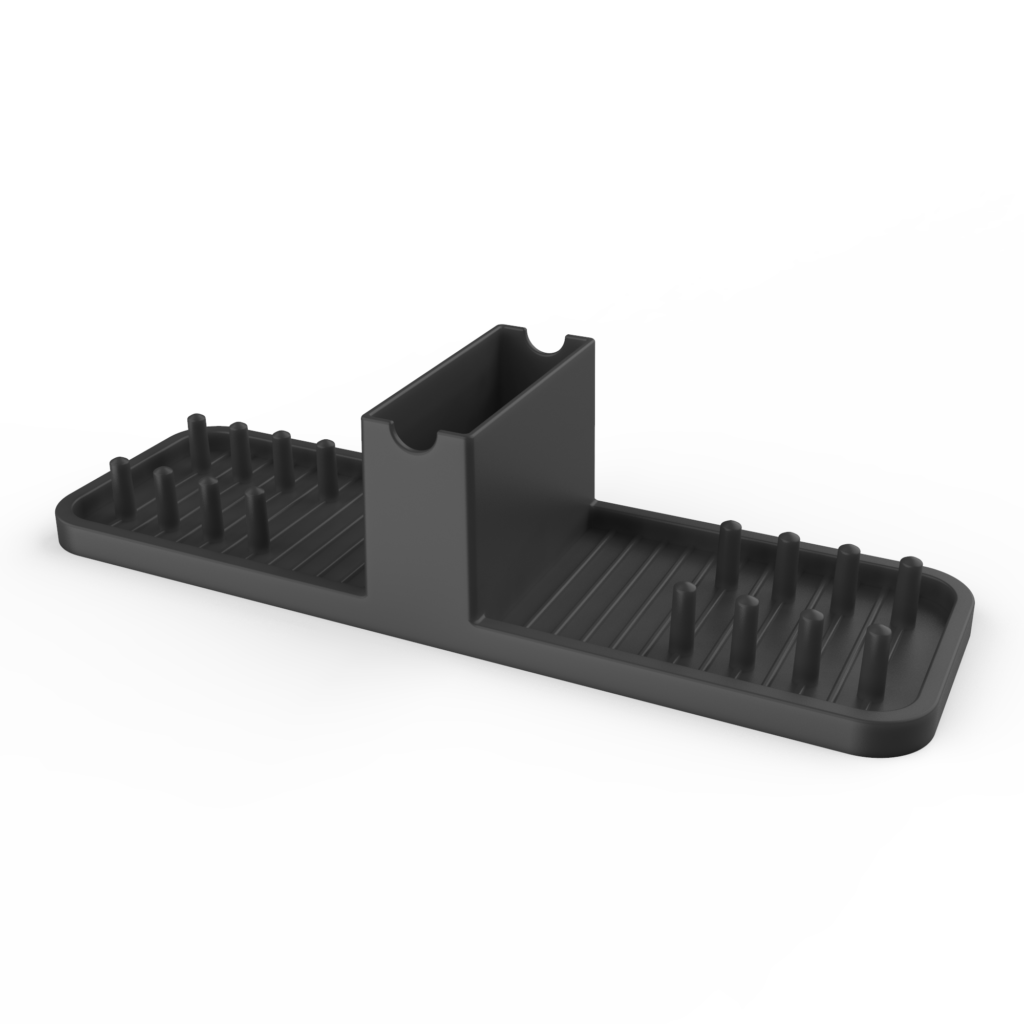 This dish drainer design not only focuses on functionality but also considers the aesthetics and cleanliness of the kitchen space. The water is collected at the bottom of the rack, preventing it from touching the drying dishes and utensils. The raised support material at the bottom easily supports various types of dinnerware.