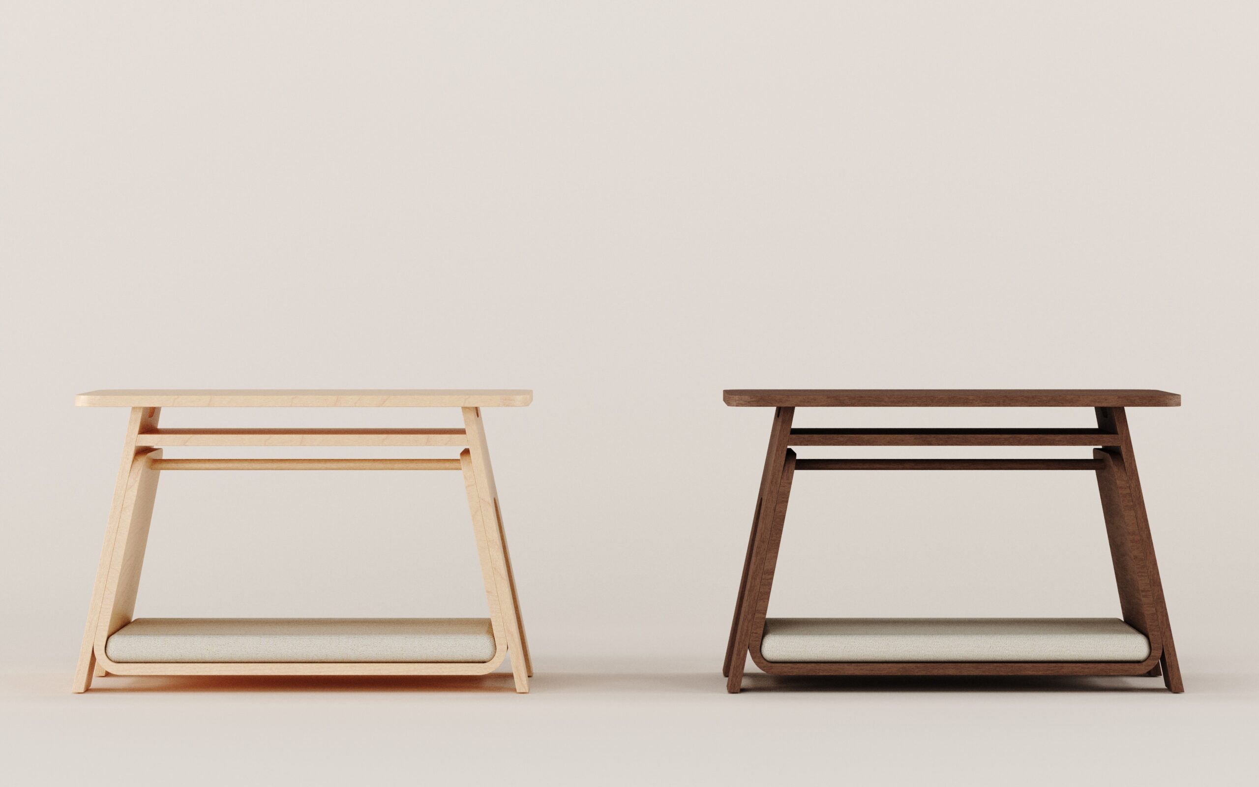 《Calm Bench》 features an ergonomically shaped seat that supports your daily routines—whether sitting down for a moment of rest or going about your day. Beneath the seat, a thoughtfully crafted nook offers a private, cozy nest just for your pet, creating a quiet space where you and your furry companion can share every peaceful moment together.