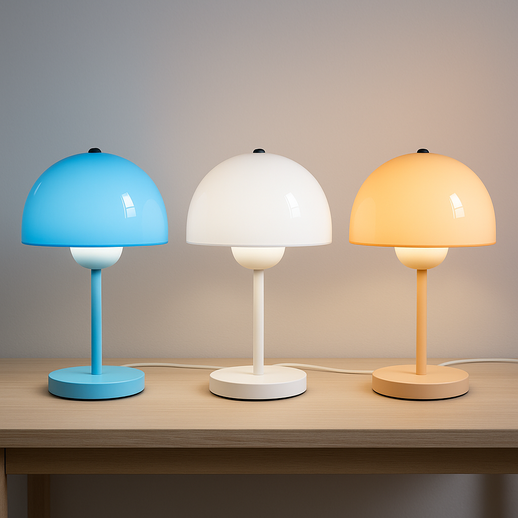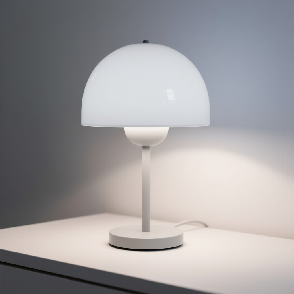 - 俐落造型:半球形燈罩搭配極簡直立結構,線條圓潤而富節奏感。